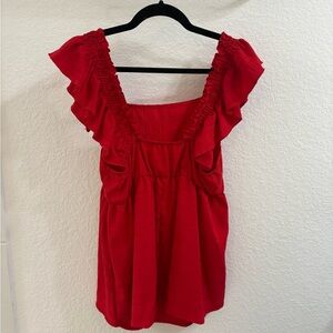 NWOT. Red maternity top with ruffle accents. Perfect for spring/summer! Smoke-free home. Bundle with other maternity clothes for a discount!