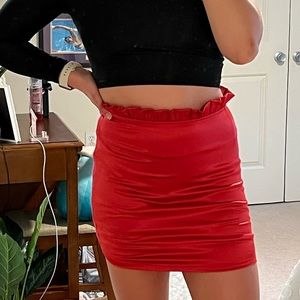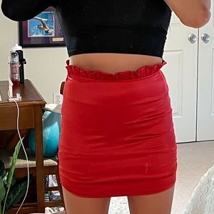 Bright red satin high-waisted mini skirt with a ruffled waist from Henri Girl, listed as Princess Polly. Says size L but fits like a size 6/M. Has a zipper on the side as well. Never worn before, new with tags. Free to make an offer or create a bundle for discounted pricing ✨