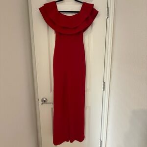 Step out in style with this stunning red off-shoulder romper. A flattering fit :)
