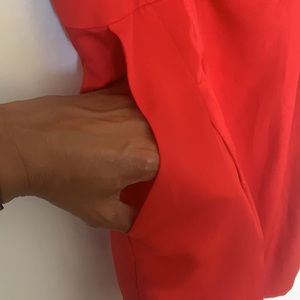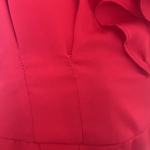 Boutique style red ruffle neckline party dress with pockets. Comes with a matching tie waist belt that can be removed and used with an alternate belt to change the look. Stunning yet casual dress for a summer afternoon or evening dinner party.
