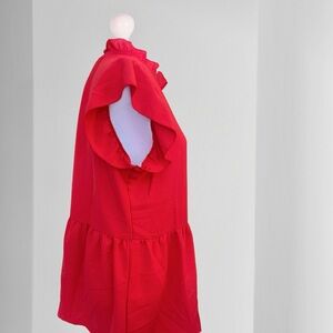 Vibrant red blouse with playful ruffle sleeves. Adds a bold touch to any outfit.