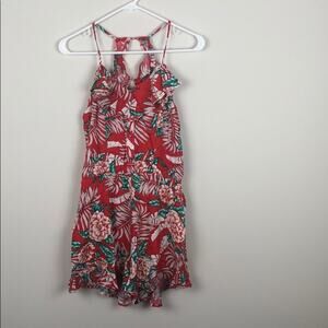 Red Ruffle Romper Tropical Floral