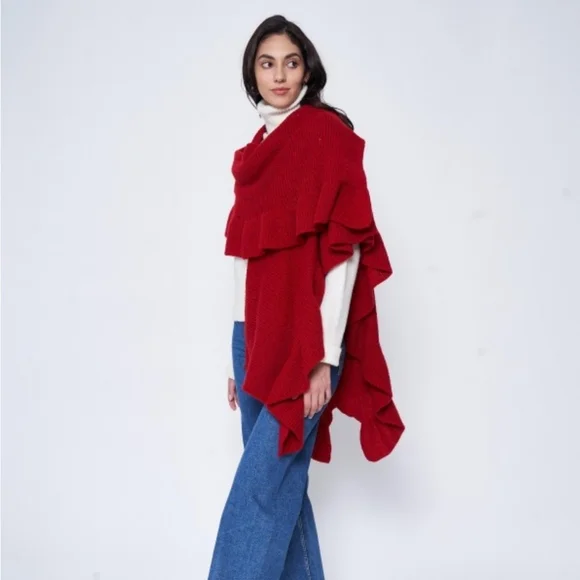 Stay warm and stylish with this elegant red ruffled sweater. Perfect for any occasion, this sweater adds a layer of sophistication to your wardrobe.