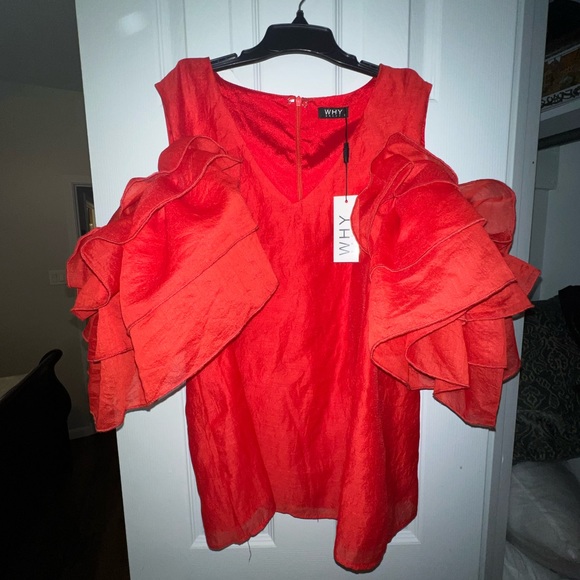 Red Ruffle Sleeve Blouse