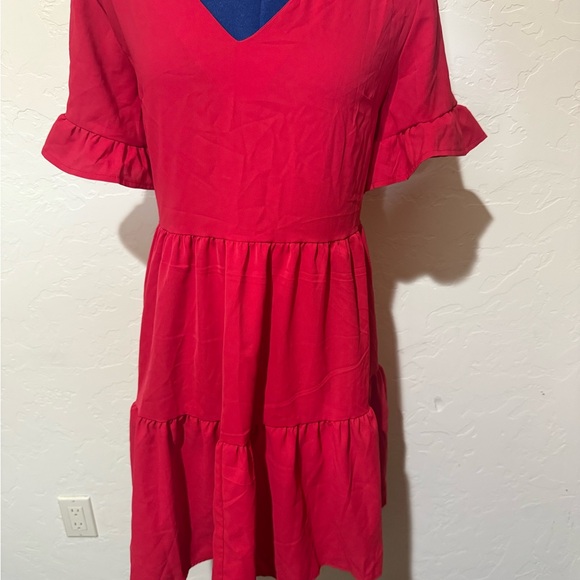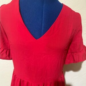 Chic and vibrant red mini dress with stylish ruffle sleeves. Perfect for any occasion.