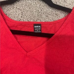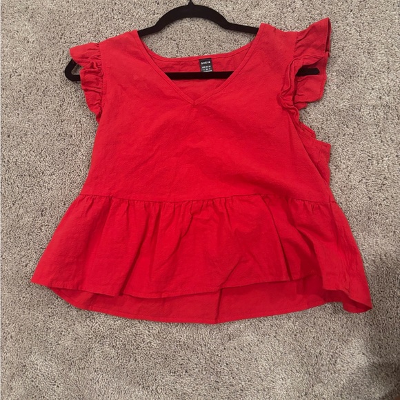 Brighten up your wardrobe with this vibrant red ruffle sleeve top. Perfect for any occasion, this top offers both style and comfort.