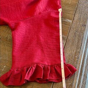 Stylish red top with ruffle sleeves. Perfect for any occasion. True medium. No stretch.