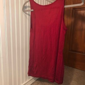 Red tank top with ruffles coming down neckline. Size S from Express but I am a Medium and it fit me fine. Worn a few times, great condition. Very dressy and cute!