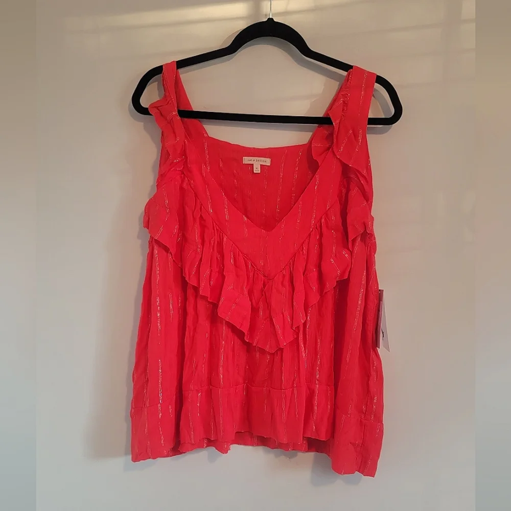 NWT Red Ruffle Tank Top w/ vertical metallic threading.