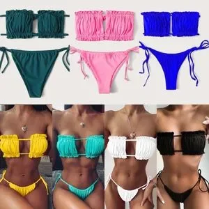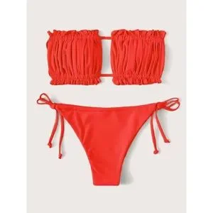 Turn heads with this stunning red ruffled bikini set. Perfect for a day at the beach or lounging by the pool.