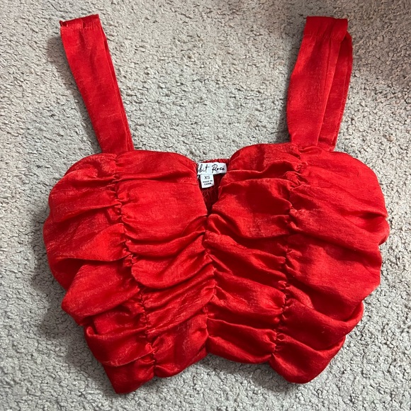 Vibrant red ruffled crop top with adjustable straps and built in bra.