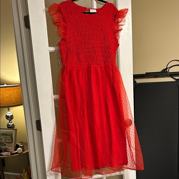 Bright red dress with charming ruffles. Perfect for Valentine’s Day!
