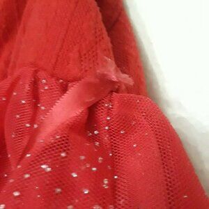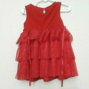 Charming red kids dress with playful ruffles, perfect for any special occasion.
