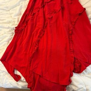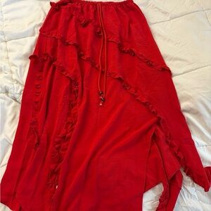 Red Ruffled Maxi Skirt