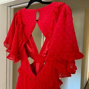 Red Ruffled Mini Cutout Dress