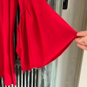 Elegant red dress with ruffled sleeves. Perfect for any occasion.