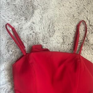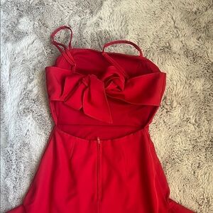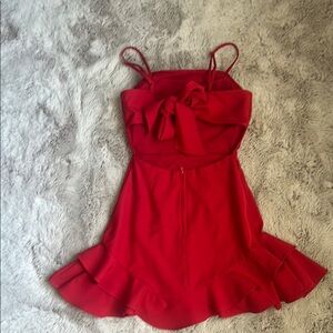 This vibrant red mini sundress features playful ruffles and delicate spaghetti straps, perfect for a cocktail night out. Its flirty silhouette and textured fabric make it a standout piece for any occasion.