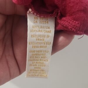 This vibrant red blouse features a charming tie front and delicate ruffled detailing, creating a sophisticated and stylish look. The lightweight fabric ensures a comfortable fit, making it a versatile addition to any wardrobe.