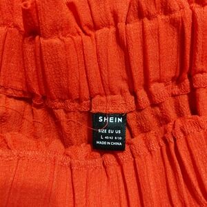 Stylish red set featuring a ruffled top and matching shorts. Perfect for a chic look.