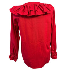 Elegant red blouse with ruffled details, perfect for any occasion. Add a pop of color to your wardrobe.