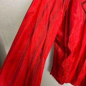 Elegant red ruffled women's top with a stylish design. Perfect for any occasion.