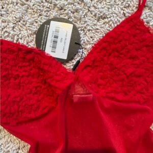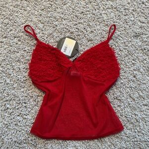 White fox red ruffle cami top with mesh sheer detail. So so cute and the perfect girls night out top. Never worn with tags.