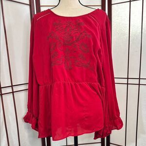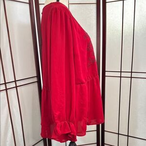 Red Ruffled Blouse with Relaxed Fit and Billowy Sleeves