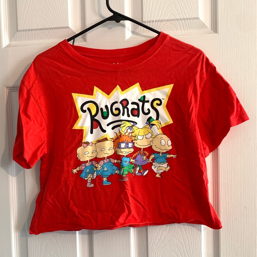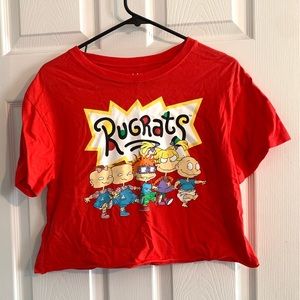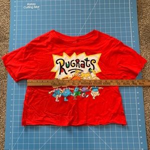 Nickelodeon Rugrats crop top, red with rugrats design on front, womens size small, measurements provided in images.