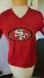 Red mesh jersey with SF logo. Features white stripes on sleeves.