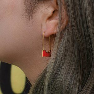 18K Gold Plated Red Safety Pin Lock Drop Dangle Earrings.