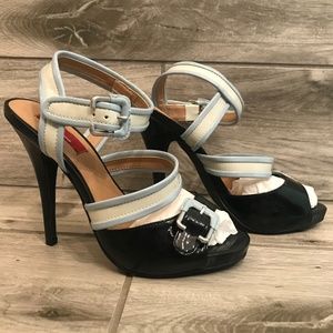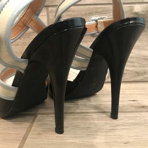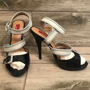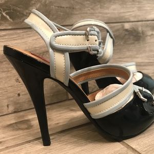 New without box (NWOB). Size EU 36 / US 6. Never worn, only tried on. Black, off white and light blue patent leather heels by Saks Fifth Avenue Red Label. Originally $195.