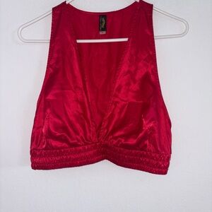 Just Sexy Intimates Racerback Satin Deep V Red Top