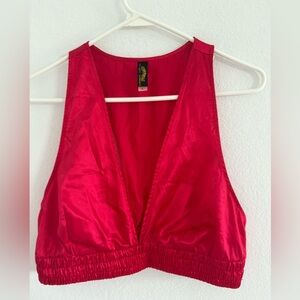 Red Satin Deep V Sexy Racerback Top