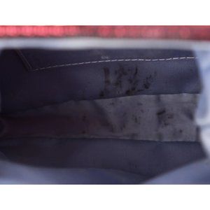 The Fendi Clutch is made of red satin in a color block pattern with dark red python leather piping & matching leather covering the frame. It has multi-tonal hardware & Swarovski crystal embellishments at the kiss-lock closure at the top, as well as the FF logo.