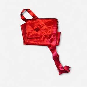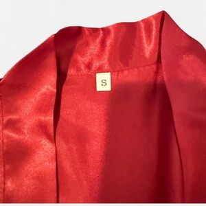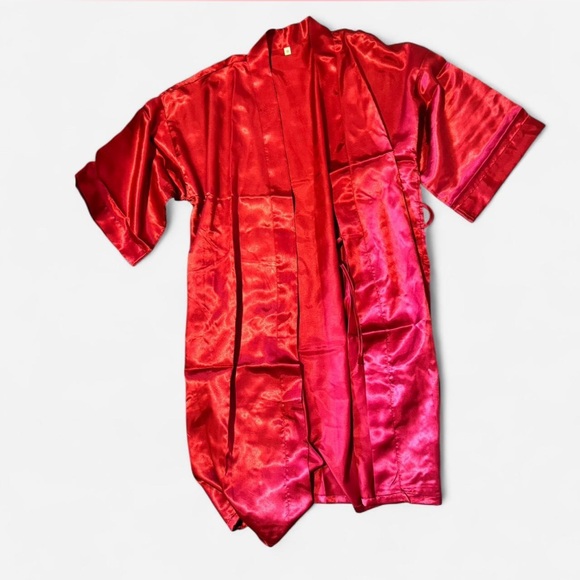 • Elegant red satin robe. Perfect for lounging or a Halloween costume