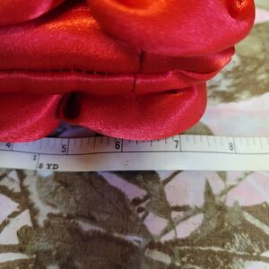 Red Satin Rosette Clutch Top Handle Formal Evening Black Tie Event Bag GUC
