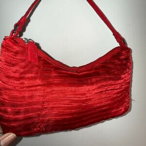 A beautiful red satin evening shoulder bag, perfect for holiday parties, festive dinners, date nights, and New Year’s Eve celebrations. The soft ruching and rich satin texture give it that classic Y2K-meets-cocktail-party charm. Lightweight, feminine, and eye-catching — the ideal pop of red for the season.
