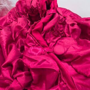 Red Satin Ruched Round Christmas Tree Skirt With Button Closures 60"