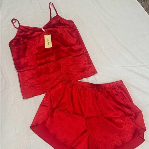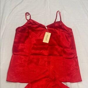 Luxurious red satiny camisole and shorts set by Ekouaer. Ideal for comfortable lounging or sleepwear.size medium. NWT. Bombshell, pinup, classic, lingerie, matching set, valentines, holidays, Christmas,