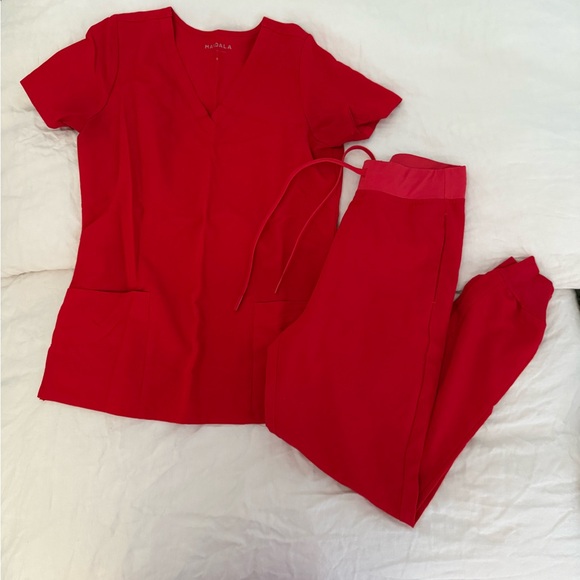 Mandala bright red scrub set with top and jogger pants. Must buy as a set.