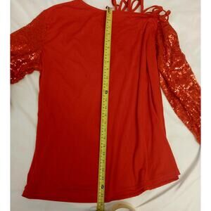 Red Sequin Cold Shoulder Strappy Long Sleeve Shirt Women’s 2XL Holiday Party