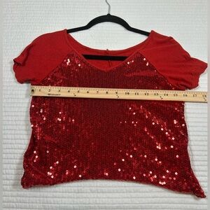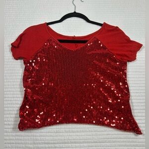 Red Sequin Crop Top. Short Sleeves. Size Large. #Major Maximalism. #Glam #sequin