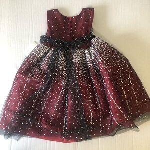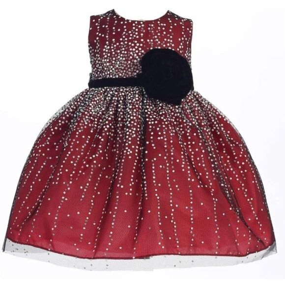 Red Sequin Dress with Velvet Flower Sash Sz 3T Special Occasion Holiday Wedding