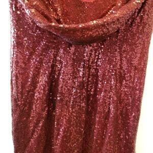 Red sequin dress, custom made. Measures laid flat approx 17 inches chest, 14 waist, 16 hips, 60 length. Low back. Great for Graduation, Prom, weddings and formal party. Some wear evident on bottom hem, and a minor hole ( see last few photos ). Size 7