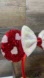 Sparkling red sequin Minnie Mouse ears with a white bow. Perfect for Disney fans.