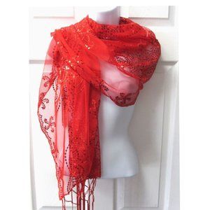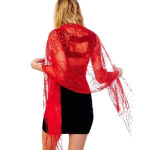 Red Sequin Shawl Wrap Sparkle Fringed Scarf Wedding Bridal Evening Dressy Formal