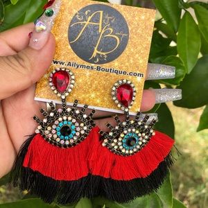 Set of two, one red velvet bandana and one pair of red earrings 💋
