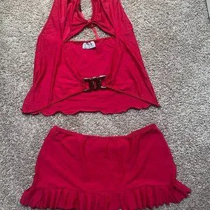Super cute and sexy red set, definitely picture this set as being cute as a cover up for a bikini, especially with the mini skirt! Overall super cute