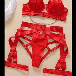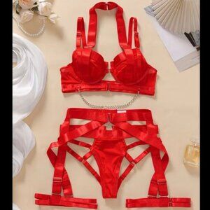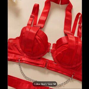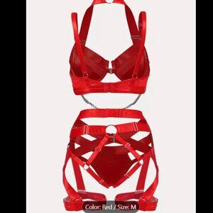 ❤️ Red Sexy Strappy Harness Lingerie Bra & Panty Set | MEDIUM | BNWT