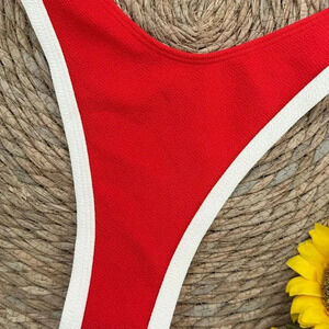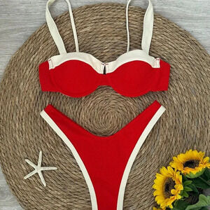Red Sexy Women's Color Blocking Bikini Swimsuit